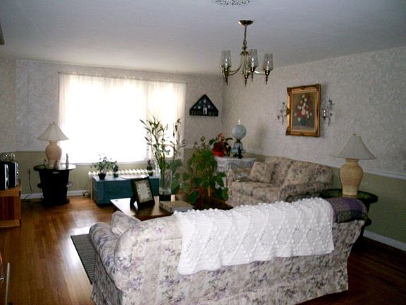 Unique design for this 2 story home offering large rooms, family room, living room w/beautiful wood floors, formal dining room, 2 baths upstairs with 1-1/2 baths down, some laminate flooring throughout, large laundry room, 2 car attached garage, 1 car garage in basement, large level lot, shared right of way to access rear of home. Square footage and lot size taken from assessment records.