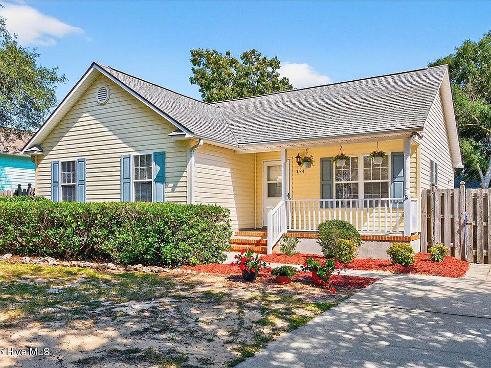 No trick, just a treat! We've made a sweet price improvement! Envision yourself on the beach! This stunning coastal gem, an affordable home situated on the sought-after east end of Oak Island, is ready for you to embrace your dream lifestyle. This SINGLE-LEVEL home features low-maintenance vinyl siding, a roof installed in 2018, HVAC (2016), Hot Water Heater (2022) and a FRESHLY PAINTED INTERIOR. Built on a RAISED SLAB, his home includes 3 bedrooms, 2 full bathrooms, a SCREENED PORCH, and a FENCED BACKYARD. Enjoy a yoga class at the Oak Island Recreation Center, go kayaking on the Davis Canal, and take a stroll to the beach, all within just 3 blocks! Oak Island is friendly to LSV golf carts, and with beach access at 40th Street, you can soak in the stunning scenery while enjoying local restaurants, shopping, and 2 grocery stores without ever leaving the island. The beautifully neutral interior, freshly painted in September 2025, features Pergo-type flooring throughout the living area and all bedrooms—NO CARPET in sight. The kitchen boasts a tiled floor, white cabinets with some pullouts, neutral gray countertops, stove (2025), dishwasher (2025), a double bowl sink, refrigerator, and a separate dining area with French doors leading to the screened porch. A rare find, the SEPARATE LAUNDRY ROOM comes equipped with A WASHER AND DRYER along with shelving, making daily life a breeze. This home offers ample closet space, including a hall coat closet, a linen closet, and a pantry. Additionally, there is a convenient OUTDOOR STORAGE ROOM for your tools, which also houses the hot water heater (2022). The newly updated irrigation system is available for your use if desired. The Town of Oak Island offers a variety of fun amenities, including Pickleball, Tennis, Splash Pad, Skate Park, an outdoor amphitheater hosting concerts every Friday during the summer, and a Farmers Market on Mondays at Middleton Park. Boaters will love the public boat launch with easy ICW access. For golf lovers, the Oak Island Golf Course is nearby, complemented by Duffers Restaurant for a casual dining experience. A short drive to downtown Southport reveals a historic district brimming with specialty shops and waterfront dining options, enhancing the charm and convenience of coastal living. This one won't last long, call for your private showing today!