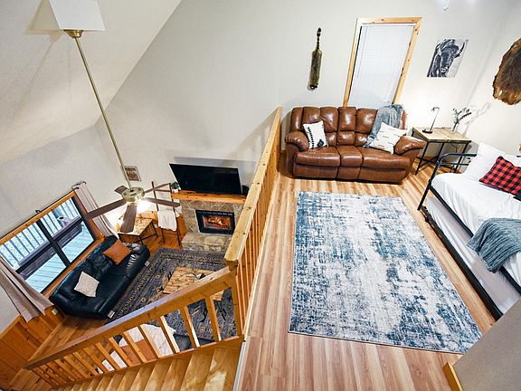 Water paid for by owner! Willing to negotiate for mid term lease. Fully furnished and recently renovated cabin! On an acre of land in a quiet neighborhood, with deer and other wildlife seen almost every day. Upstairs you'll find a large bedroom and adjoining bathroom, with queen bed and trundle bed. The loft can be used as another bedroom, and has two twin beds (another trundle bed.) and a couch. 75 in TV on main floor, as well as another bedroom and bathroom. Basement is partially finished, and has another gathering space, as well as another queen bed if you need. Deck wraps around 3/4 of the home. MUST APPLY TO VIEW PROPERTY. Water paid by owner. All other utilities to be paid by tenant. Dogs allowed with adjusted rent of $50 to base amount. No cats. 12 months minimum lease. If you are looking for a shorter lease, rent will be adjusted. Deposit and first month's rent due at signing. If you do not apply through Zillow, there will be a $40 application fee. Absolutely NO smoking or vaping in cabin or on property. Upon end of lease, must have a professional move out clean and invoice as proof, or cost will be taken out of deposit for management to hire cleaners.