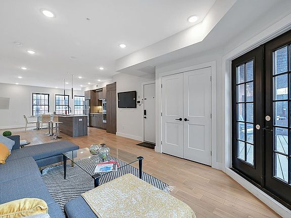 Welcome to The York! With large serene private terraces and direct elevator access to a the huge communal deck; this elevator building optimizes every square foot of the floor plan and includes two communal rooftop decks, a large garage, and a bike rack on the 1st floor. Some Customization is still available. Radiant and inviting, this airy condominium entails 3bedrooms and 2 bathrooms with approximately 1,550 sq ft of living space. Equipped with chef's kitchen, Bosch stainless steel appliances, modernized cabinetry, in-unit washer/dryer, and in-ceiling speakers managed by Sonos amplifier. 5" wide french oak plank hardwood floors throughout, Porcelanosa tile and plumbing fixtures, LED lighting and heated bathroom floors create a true luxurious experience. The builder spared no cost in making this home sound proofed by using sound channels and sound clips, Quiet rock, green/noise proofing compound, and even foam insulation, dampening the noise. Cosmetic customization in the kitchen and living is also available, the builder can extended the cabinets or countertop space. The buyer can choose wine fridge or drawer style microwave. And they can build out a closet in the hallway so the coat closet in the living room can be turned into a wall for the tv if they want to turn the living room around. This rare Heights location is easily commutable and accessible to public transportation being only 1 block from Palisade Ave; with direct bus lines to NYC Port Authority, Hoboken, and Downtown JC. The Hudson Light Rail Stations are only minutes away as well as Pershing Field's indoor pool and ice skating rink being only 3 blocks away. Riverview Park with its amazing views offers Farmers Market, movie nights, and neighborhood events. Garage parking available. 5 year new construction tax abatement. Please contact listing agent for private showing! Copyright Hudson County MLS. All rights reserved. Information is deemed reliable but not guaranteed.