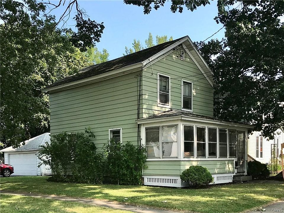 Why rent when you can Own? Don't miss this Terrific, Affordable Home with so much to Offer! 2 Bedroom 1 1/2 bath Colonial in desirable neighborhood with 2 car Garage, Double - Corner Lot with lots of yard, First floor laundry, Formal dining room and two enclosed porches!!! New furnace, newer flooring and paved driveway with enough room for 4 cars! Convenient location, small deck on the back for your enjoyment and appliances included are added perks! A little TLC will make it shine! Priced to sell so Call today !