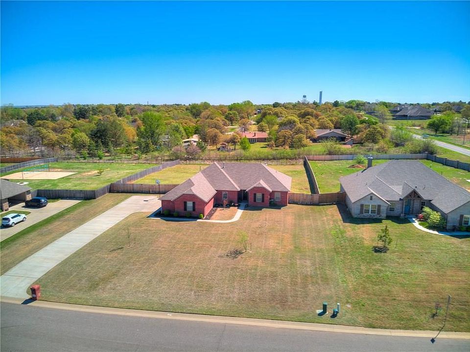 Welcome to peaceful country living w/ the most amazing sunsets! Nestled in a beautifully private neighborhood in Choctaw, this home is a true five bedroom. Elegantly modern, the home features a full pantry, granite countertops, 16 foot wide driveway, trayed ceilings in master & living as well as a jetted tub that you can fill to the brim w/ an upgraded 75 Gallon Hot Water Tank! The entry has well appointed wood look tile and opens up to the spacious living room w/ gas fireplace and cozy brick hearth. Amazing kitchen with gas range, granite counters, walk in pantry, coffee bar space and 4 stool breakfast bar. Master bath has tiled walk in shower, jetted tub, dual vanities, large walk in closet plus linen cabinets. Some interior paint and all carpet updated April '20. Outside, the covered porch overlooks a beautiful one-acre lot. Come see this phenomenal home today close to Tinker AFB!