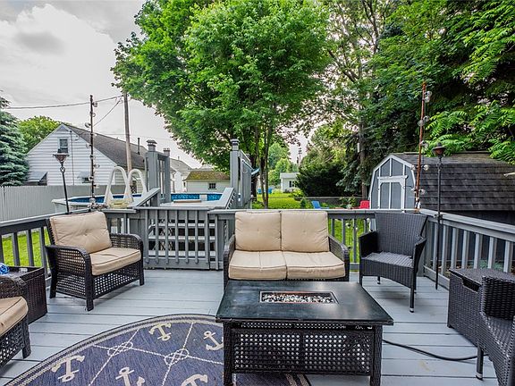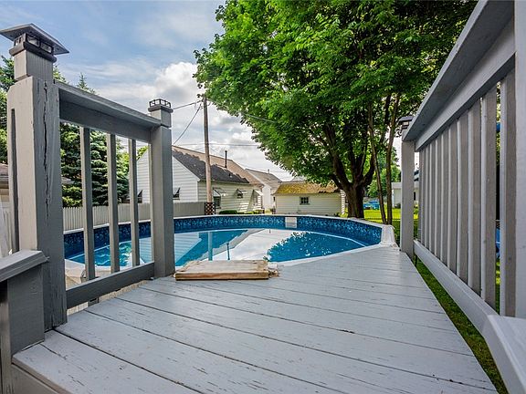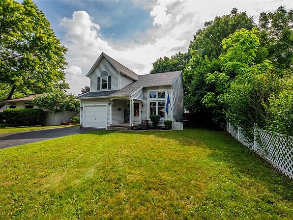 124 Oakwood is a newer built home (1992) located along the border of the City of Rochester's Charlotte Neighborhood & just minutes to Ontario Beach & State Park. Visit the boardwalk & walk/bike the always popular, Charlotte Pier. The port of Rochester has great dining options & always vibrant night life. This home has a wonderful vibe & has been exceptionally well cared for by the owners. Enjoy the privacy in a backyard designed for good times! Sliding glass door to deck for entertaining, Pool (w/new liner), recently installed paver patio, storage shed & still more space w/fire pit! Impressive cathedral ceiling over the living room. Updated kitchen & breakfast bar seating that opens to dining room/eat-in space. 1st floor bathroom off kitchen, near garage entry/side entrance. Hardwood throughout 1st floor. New carpet takes you upstairs to the primary bedroom adjoined to the full bath. 2 additional bedrooms w/good sized closets. This home has a NEW ROOF (20) a newer H/E York furnace (14), updated H2O Tank (16) & vinyl replacement windows! Full basemnt w/glass block windows & bonus/laundry space. Move right in & enjoy!