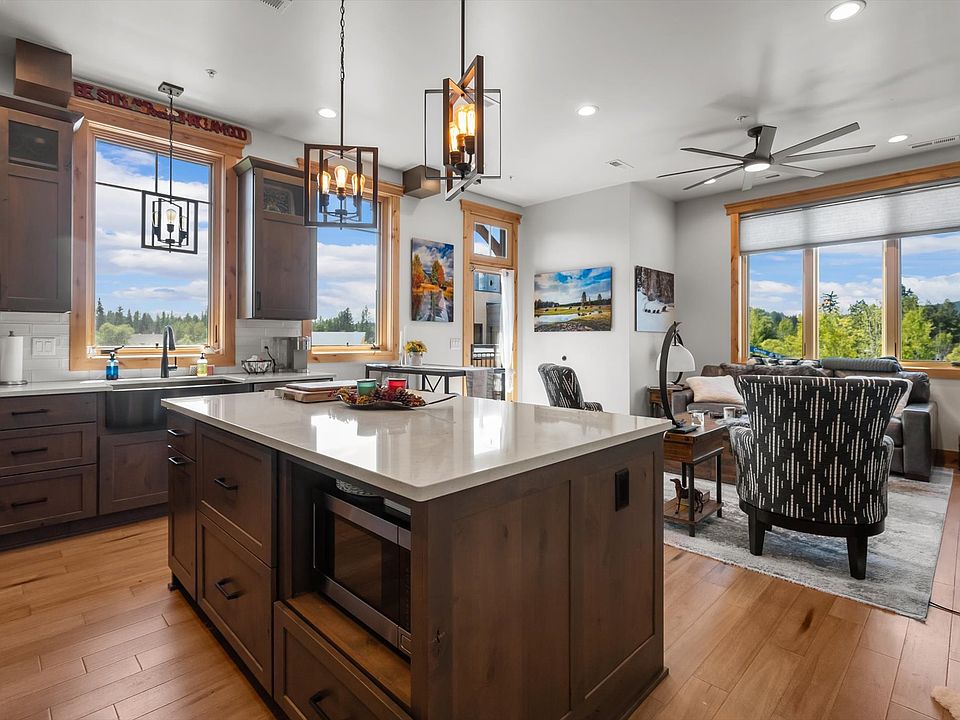 Experience the best of downtown Whitefish in this beautifully finished 2-bed, 2-bath condo. The open kitchen and living area flow seamlessly to a private deck, creating the perfect space for entertaining or relaxing. The primary suite offers a touch of luxury with heated bathroom floors, while in-unit laundry adds everyday convenience. Residents enjoy covered parking, elevator access, and a rooftop deck with sweeping mountain views. Just steps from restaurants, shopping, and nightlife, and minutes to Whitefish City Beach and Whitefish Mountain Resort. This property is ideal as a vacation retreat, full-time residence, or income-producing short-term rental.