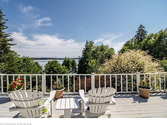 Stunning Cape overlooking the Meduncook River with 350 feet of private water frontage & a pebble beach at mid tide! Spacious home with custom kitchen, dining area & living space all able to enjoy beautiful wood burning fireplace. Main living area has walls of windows showcasing the views! First floor Master with bath, attached 2 car garage, spacious deck for entertaining, large yard with gorgeous flower gardens & stone walls. Great summer rental opportunity or year round living! Private setting!