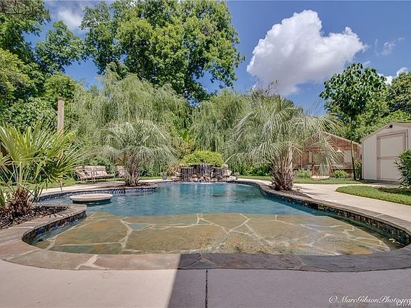 This is the home you've been waiting for! Only 4 houses down from the Mardi Gras parade route with outdoor kitchen. You will be transported to the Caribbean as you hear the cascading of the waterfall in the designer pool while watching the weeping willows and palm trees sway in the wind. There is a 730 sf climate controlled workshop and separate drive for an RV with 50 amp plug! Enjoy the ambiance of the fireplace from your jacuzzi tub and master bedroom. The kitchen is a chef's dream! So much more...