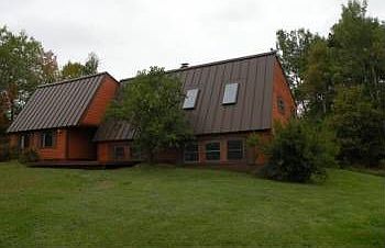 Contemporary passive solar home heats effectively with a Russian fireplace, skylights, overlooking 8.3 acres, beautiful views, privacy and a horse bar