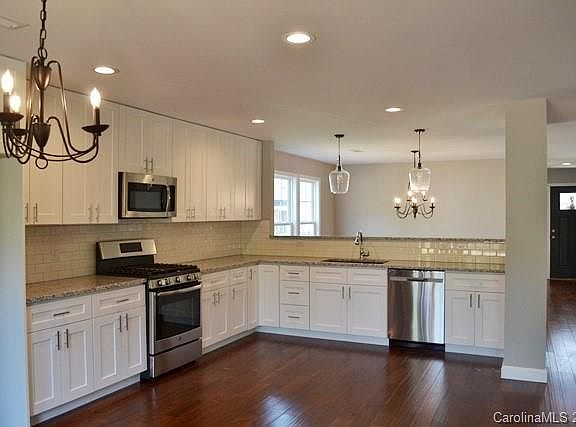 Wow, wow, wow! Such a beautiful home that has been completely gutted to the studs. You will be impressed! Lots of square footage and open floor plan. Gorgeous laminate wood flooring throughout main level, beautiful and unique tile flooring in all baths. Living room could be used as an office, dining area, breakfast area. Fabulous granite kitchen with stainless appliances. All bedrooms located upstairs and they all are large and have walk-in closets. Beautiful fixtures. So much to take in with this home. A must see! Ready for a new owner.