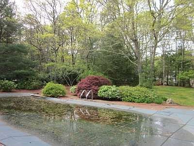Very Private Setting for this spacious contemporary set on a knoll with large back yard complete with in-ground pool, extensive decking and an additional large yard basket ball area with decking. Great family vacation or year-round home in an area of fine homes.