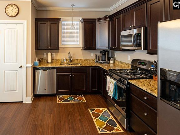 Quick close available!! Beautiful, energy efficient 3 level home. 3 bedrooms, all with vaulted ceilings, and 2.5 bathrooms. Different from many homes in this community, enjoy a fully open concept first floor with large eat-in kitchen and an upgrade to vinyl tile in the master bath. Fine craftsman details such as heavy crown molding, trimmed windows, and chair railings. Enjoy the luxury of granite counter-tops in kitchen and full baths, recessed lighting, stainless steel appliances, gas range & tank-less water heater. Third bedroom can also be used as a loft/game room. Walk-in attic storage is available in this room and makes for easy storage of seasonal items. Home has a fenced backyard with automatic sprinkler system front and back. Front yard care and annual pressure washing covered by the HOA. Also comes with security system. Excellent Lexington One schools! Convenient to great restaurants, shopping, schools, Ice House Amphitheater and Lake Murray.