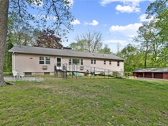 This ranch style two-family, in-law ready home is in excellent condition The setting is picturesque on 3.9 acres has a circular driveway and mature plantings. Investors take note There are separate entrances and utilities for each unit including separate oil tanks, electricity and well water. There are even 2 sets of hookups for washer and dryer. Side A is the larger of the units with 2 bedrooms and 2 full baths. The kitchen has a breakfast bar and opens to the family room/dining area where there's a cozy fireplace with built-in cabinetry and shelving surrounding it. The living room is light and bright with a large picture window plus additional windows. The primary bedroom has a great separate space for an office too. You can walk out to the paver stone patio and enjoy the lightly wooded back yard. There are 2 built-in a/c units plus a brand new boiler. Side B has a large 18x11 living room with triple windows, a dining area, and a galley style kitchen. A built-in a/c unit provides cooling. The full bath is spacious. The full basement is a large 64'x27' space, great for storage or finishing. A 3 car garage offers additional storage, plus there's a shed with electricity. There's also a generator hook-up too This property will be sold "As Is". Please give 24 hour notice for showings. Also listed on MLS as single family MLS#170489388 Offers are due Monday 5/23 by 8 pm