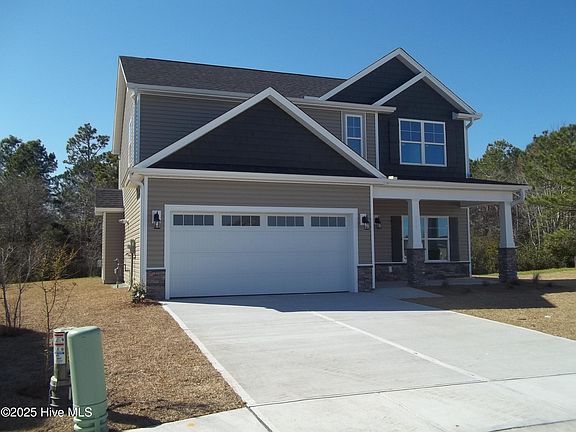 Come check out one of the last remaining homes in the Terraces. This home is in a cul de sac in the wonderful new home community, The Terraces. Neighborhood amenities include a community pool and lake, and an abundance of sidewalks. Natural gas community with fiber optic internet. The Stoddard plan is 2011 square feet with 4 bedrooms, all upstairs. Outside has a covered front and back porch with stone wainscoting on the front. Coffered ceiling in the dining room with LVP running throughout the downstairs main living areas. Open floorplan concept with kitchen island, quartz countertops, kitchen tile backsplash, and stainless steel appliance package including a gas range and a gas fireplace. Walk in tile shower in the Primary bathroom, with tile flooring in the wet areas. Located halfway between Wilmington and Jacksonville, in the Pender County School district, and about 5 miles to area beaches. WH2001