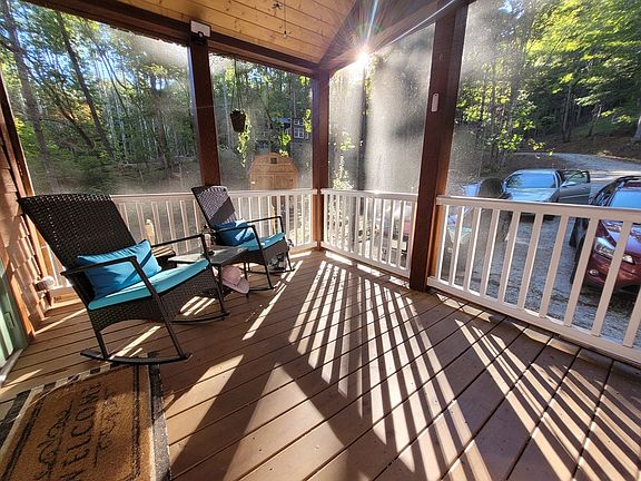 A turn-key FURNISHED tiny home ready to be your mountain get-away vacation home, or to generate short-term rental income! A great floor plan and many extras-a spacious loft sleeping area for more guests, a screened-in porch, and wood ceilings and walls. There's a whole house generator and surge protector -some insurance co's give a discount for having this!, soft closing kitchen cabinets, stack washer-dryer unit, sliding barn doors in bedroom, queen sized bed that lifts up to provide additional storage (see photo), upgraded kitchen hardware, and dishwasher! Outside extras include a roomy storage building, plenty of parking, exterior water and electric for RV and yard space to put in an RV parking area. The Bear Pen Cove community has a pond & common areas to enjoy. Can sleep 4-5.