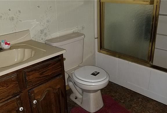 Loads of room inside with an eat in kitchen with pantry, separate dining room, oversized living room, full bath and laundry area on the main level. Upstairs are three more bedrooms (one captive) and two more bathrooms. Off the kitchen is a covered rear deck. Front covered porch and a fenced in yard. Attached to the basement is a bonus addition that could be used for garage storage that has pull open doors to the outside.