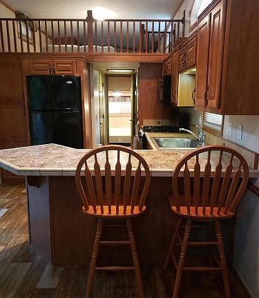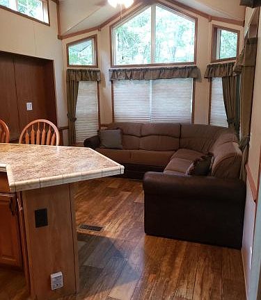 IMMACULATE LIKE NEW 2013 PARK MODEL TRAILER AND LOT!! This trailer features 1 Large bedroom, full bath with tub shower, plus a sleeping loft for maximum sleeping accommodations! Pull-out sleeper in the couch for guests and master bed lifts up for maximum storage! Like new kitchen, dining area open to spacious living room and lots of windows bringing in the natural light!! Freshly painted enclosed attached porch doubles the living space affording room to roam and space to spread out comfortably! Brand new stone driveway!! LOW DUES OF $1650 YEAR INCLUDE WATER, SEWER AND ELECTRICITY!!!