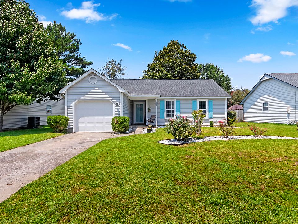 Great home in a Oak Creek Subdivision close to everything. This well maintained 3 bedroom 2 bath home is minutes from shopping, groceries, food, and more. As you walk up to this home, you will enjoy the well manicured lawn and curb appeal. As you walk in the front door, you see a large family room with a wood burning fireplace. To the left of the family room is the eat in kitchen with newer cabinets and quartz counter tops. The refrigerator, washer, and dryer can convey. The foyer, hall, and kitchen all have beautiful hardwood flooring.To the right of the family room you will find the roomy master bedroom and two bedrooms perfect for other family members or for two offices. Both bathroom vanities were updated by the previous owners. The backyard has a huge deck, perfect for entertaining. The yard has plenty of room to add a shed, or for the kids to play in. The HVAC unit was replaced two months ago.
