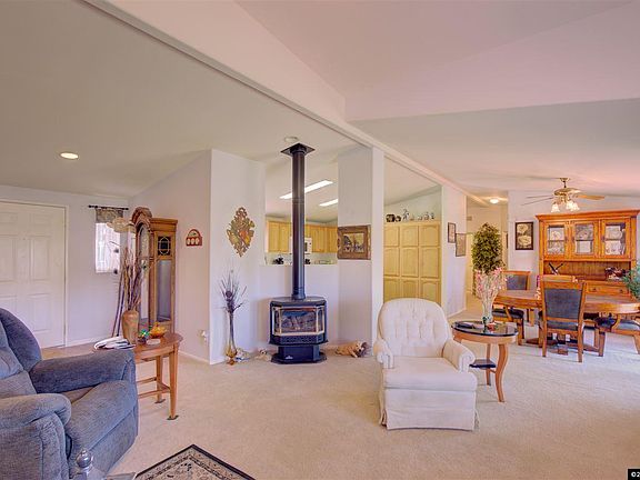 Absolutely adorable home. Very spacious open floorplan with gorgeous views surrounding you. 3 bedrooms + office/den, 2 bath, 2 car garages on 3.76 acres, beautifully landscaped lawns with mature trees, covered porch to enjoy the evening sunset in this tranquil setting. Ceiling fans in all the rooms, new vinyl plank flooring in kitchen, with large island and lots of cabinets, double-pane windows w/vinyl frames, vaulted ceilings, leased 250 gal propane tank, gas fireplace for extra warmth and forced air.