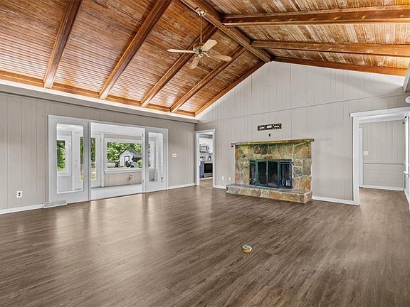 PICKENS - Country living at its finest! If you've been dreaming of homesteading, owning a mini farm, or you're in need of a country oasis, this is it! 124 Porter Road is a quintessential South Carolina brick ranch situated on ±8.29 acres of land. Featuring a lovely open concept feel, this home has 2BR/2BA, a sunroom, enclosed porch, and so much more. The great room is the perfect spot to gather, enjoying the ambiance of soaring wooden beamed ceilings and the rock clad wood burning fireplace. The kitchen is recently renovated and equipped with stainless appliances, a farmhouse sink, granite counters, stylish shaker cabinetry, drop zone and pantry. Outside you'll appreciate a chicken coop, 2 fenced pastures, and 5 garage spaces featuring plenty of room for your cars, country toys, and farm equipment! Complete your day on the large front porch which beckons you to sit a while and admire the fenced pastures, multiple pecan trees, gorgeous Pickens sunsets and rolling hills. Featuring newer windows, roof, HVAC, water heater and more; all of which are available to view on the list of improvements!