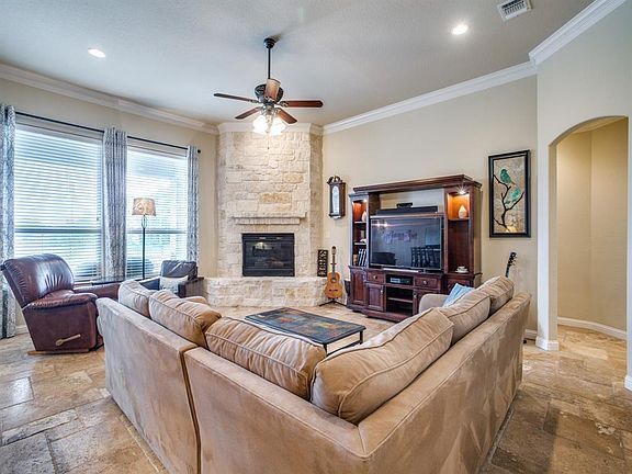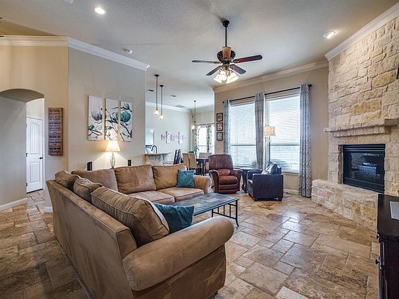 Impressive home in Jordan Ranch on over 1 acre with pool in ALEDO ISD. Travertine and wood floors throughout. Master plus 2 bedrooms down. Stone fireplace in the living open to the kitchen. Split bedroom setup. Kitchen overlooks pool so watch the kids play while staying cool. Upstairs is a teens dream with just a full bedroom, full bath, and large living space. The finishes in this one won't disappoint.