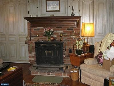 Inviting Oreland Village Colonial with artistic touches (hand painted shutters and cabinets), enclosed vestibule with stained glass sidelights, Large Living Room with wood burning stove, wooded backdrop and hand stained wooden mantle. The Dining Room has a box bay window overlooking nicely tended gardens, the kitchen as gas cooking and a ceramic tile counter top. The upstairs consists of three bedrooms, a ceramic tile bath and access to an attic. There are plaster walls and hardwood floors in all but the kitchen, bathroom and basement. There is a covered porch that is a wonderful spot for relaxing and enjoying cool summer night. The gardens are colorful and picturesque. There is a free-standing garage with plenty of electric power for any project you can think of. This home is within walking distance of the Oreland Commuter Train, Post Office and shops and restaurants. It is a quiet and desireable neighborhood. Price reflects needed updating.