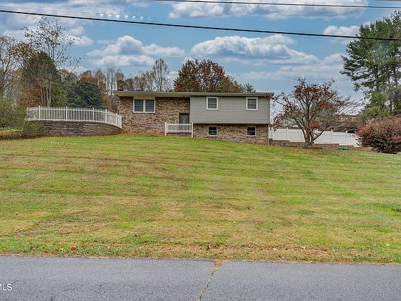 Walk upstairs to your main level with your living room and dining room open to each other with lots of natural light. Enjoy your recently painted fireplace to add to the cozy surround. Your kitchen includes original cabinetry and a new refrigerator. Laminate wood floor throughout. Down the hall you'll find your two bedrooms, full hall bath with beautiful new vinyl flooring and vanities and the Primary and En-suite half bath at the end of the hall. Access to your two car garage is downstairs. Fencing is mainly around pool area and some by the garage. New paint, new vinyl flooring in both bathrooms on main floor, new metal roof in 2018, new double pane windows 2019, newer HVAC 9 years ago, and newer vinyl siding. See list of all of the updates! Propane tank is owned. Conveniently located with your closest grocery store being 4 minutes away, 8 min to Warriors Path State Park and Golf Course, 12 min to Tri-Cities airport, 22 minutes to Downtown Johnson City and 25 min to Bristol. Washer and dryer DO NOT convey.
