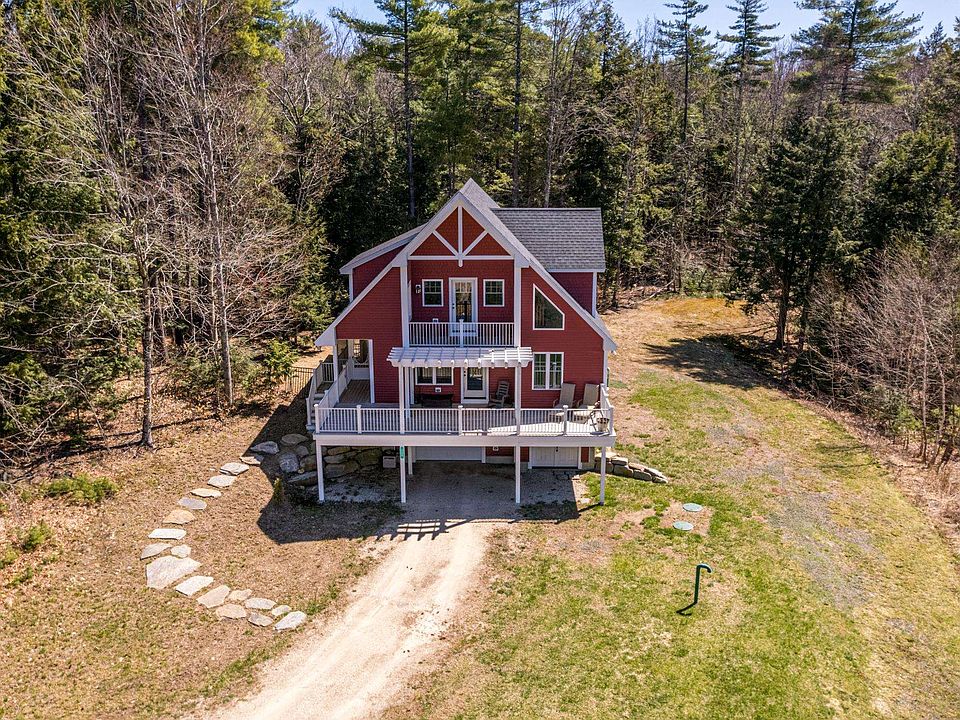 *Open House Canceled* Nestled on a large 5.32-acre lot with awe-inspiring mountain and water views, this contemporary single-family home at 124 Reservoir Road offers a serene retreat in Farmington, NH. Built in 2016, this custom built, wood-framed home boasts a unique architectural style. This residence features a modern kitchen, an open-concept living room, and a dining area with seamless access to the expansive front porch, which boasts stunning water views. The first floor also includes a bedroom, a full bathroom, and a laundry room. Ascending the stairs, you’ll discover a spacious primary bedroom complete with an en-suite bathroom. Adjacent to the bedroom is a private balcony for leisurely outdoor relaxation. Additional amenities include a one-car garage and a large walkout mudroom. Outdoor living is enhanced with a screened-in porch and a rear deck, perfect for enjoying the surroundings. Don't miss your chance to make this house your home!