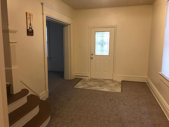 White 2 story home. First Floor: large foyer. Living room. Dinning room. Kitchen. Second floor: 3 bedrooms. Full bath. Washer/ dryer hook up in basement. Off street parking. Fenced in yard.