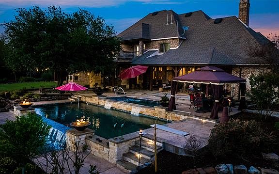 Resort-style living on a 2.6 acre heavily treed creek lot in The Ridge Neighborhood. 40+ acres of green common area with ponds. Huge kitchen boasts high-end SS appliances, two islands, exquisite cabinetry and opens to family and breakfast room. Master bedroom has walk-in shower, his & hers closets. Guest bed down. Upstairs complete with Media, Game Room, LR, and two more bedrooms. Infinity edge saltwater pool, built in 2017, includes hot tub, swim jets, diving pool, fountains, remote pool cover, water fall all heated with natural gas and fully operational with phone app. Forest area by creek and walking bridge, 2 fire bowls, 5' fire globe, wood burning fire place, built-in grill, and covered patio.