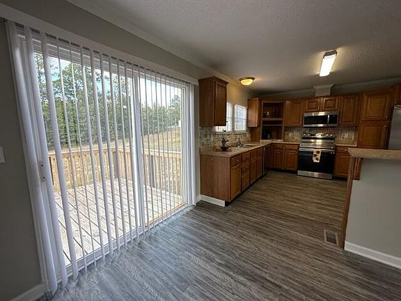 North Augusta gem! This 3 bedroom/2 bath features an nice open floor plan, lots of natural light, large living room, stone fireplace, and a beautiful kitchen with tile backsplash, breakfast bar, and new stainless steel appliances, including refrigerator. Spacious bedrooms, all with walk-in closets! Nice Master suite with roman tub, separate shower and double vanity. New flooring throughout.