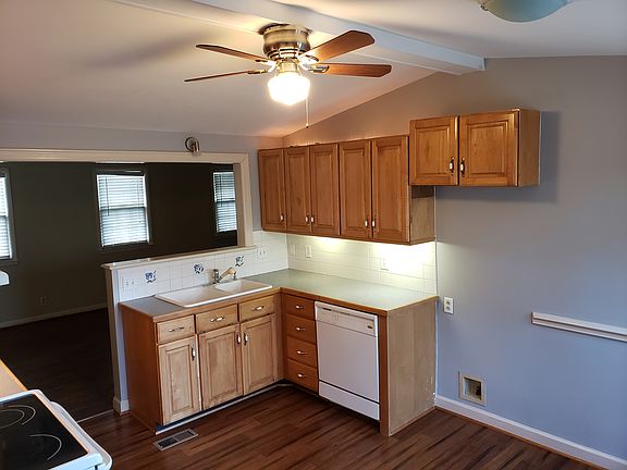 New Arch. Roof and gutters 2 26 2019! 3 BR , 1 BA home has huge den w HW floors, Kitchen w new floor, faucet and DR, Utility Room w pantry (no HVAC vent in this room), Kitchen w stove, DW, pantry (plus pantry in utility room), 1 BR w HW floors, 1 BR w window seat new flooring, #rd BR w new floor, covered front porch, deck freshly painted, storage shed in back yard, a lot of yard fenced, dog run area. close to town and down town