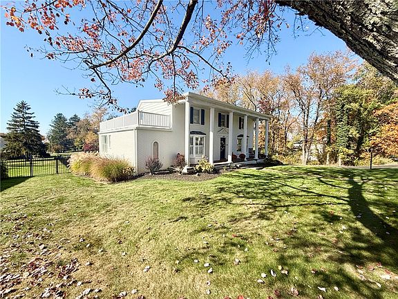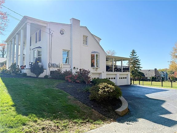 Welcome to this stunning 5-bedroom, 4-bath colonial, newly renovated with modern updates throughout. Enjoy a spacious, open-concept kitchen featuring stainless steel appliances, separate wet bar area - perfect for entertaining. The first-floor master suite is a private retreat with large walk-in closet. The upper level offers another master suite (with veranda), three additional bedrooms and hall bath. The large, vaulted family room, complete with a gas fireplace, offers views of the expansive, flat and fenced backyard. A charming front porch invites relaxation, while the covered side porch offers spectacular sunset views. The lower level boasts a game area with bar, and a convenient laundry room with a dog wash. Minutes from both I-79 and I-279. This home combines classic charm with contemporary living—perfect for making lifelong memories!