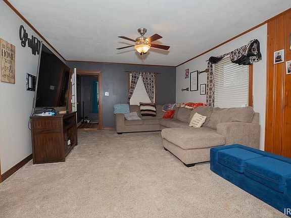Step inside and be captivated by the spacious open floor plan of this 3-bedroom, 2-full-bath home. You'll find ample room to relax in the large living room, enjoy the enclosed porch, and utilize the additional flex space. The eat-in kitchen features stunning granite countertops, perfect for meal prep and gatherings. Off the kitchen, there's more space leading to an unfinished basement with two versatile areas, ideal for a workout zone or gaming retreat. Conveniently, the laundry area is located off the primary bedroom, which boasts its own full bath. Outside, discover a tranquil backyard oasis, complete with fencing and two storage barns. Plus, just a few houses down, you'll find a fantastic riverview at the end of the street!