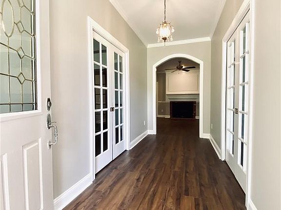 The kitchen is fully equipped and all stainless steel appliances convey with granite countertops, custom cabinets, plantation shutters, a breakfast area, and who could of missed that jaw dropping floor. With a large pantry and dry bar for another added bonus! Exit the kitchen through the french doors that open to a beautiful formal dining room. From there you may find yourself in the living area or out into the foyer at the front door entry way where you may sit down in the study or perhaps a piano room if you'd choose. The spacious master suite downstairs can be entered from the large living area with fireplace. The master suite has beautiful windows providing natural light into the bedroom and the master bath area comes with a walk in closet, two vanities, a free standing clawfoot soaker tub with a sprayer faucet (perfect for us ladies), and shower. There is an additional half bath downstairs near the spacious utility room that comes with washer & dryer (currently not pictured) and a game room with exposed brick that everyone seems to love. Upstairs there is plenty of room for family fun with a huge great room, three additional bedrooms with two full baths, and oversized room built just for closet space. Step outside and there is a raised brick deck perfect for grilling and entertaining. The lot is almost a full 3 acres on the outskirts of town. The backyard is freshly manicured. Besides the two car attached garage there is also a detached garage and workshop with plumbing and electric within, and a overhand and shed. The seller has even pitched in a deer skinner, dog pin, and just for fun let's ask him for a crawfish trap too.