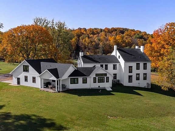 This exquisitely updated 2-story Federal home is class redefined on 101.6 acres, w/reflecting bass & waterfowl pond & will leave you speechless! There are some 70 acres of tillable cropland, 22+ acres of woods, an original 360 sq ft log cabin, great 40x70 bank barn w/ awesome woodworking shop, machinery & equipment sheds ready for your needs. 1st floor has 10' ceilings, 2nd floor has 10 1/2' ceilings. Main home has original refinished hardwoods and new walnut hardwoods on the 1-story additions. The gourmet kitchen has 12' vaulted ceiling, Cambria Britannica quartz on counters & 40 sf island & picturesque views of mountains. Thermador appliances encased in custom kitchen cabinetry add to the quality! Pantry has 110 sq ft of counters, sink, wall of birch cabinets. PLUS you get a prep kitchen w/ propane range, Baker's Price oven, refrigerator & counters. The owner's suite is huge w/2 extra large walk-in closets (one w/shaving sink feature). The 20x14 owner's bath is unrivaled w/ 2 Italian Carrera Marble "inlay rugs" and a wall of cabinetry, fireplace, granite vanity. Floor to ceiling marble shower surround, clawfoot soaking tub in middle of room, antique doors w/lead cathedral glass. A sitting room & 2 additional bedrooms w/ full bathrooms complete the 2nd floor. LL has a 150 sq ft wine room. Garage is 1,225 sq ft w/ 2nd floor layout & prepped for 2 more bedrooms & a full bath.