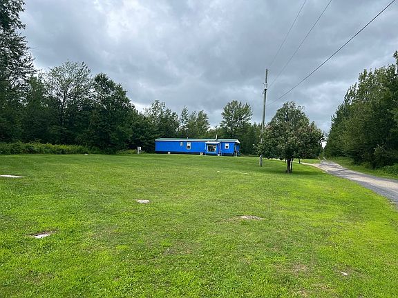 Single wide situated on a private 2 acres. Stainless electric range. Metal roof is 6 years old. Septic pumped this year. Storage sheds. Generator ready at the electric meter. Wood stove needs new interior pipe. Town plows road. 30 minutes to Canadian Border. Home is being sold AS-IS.