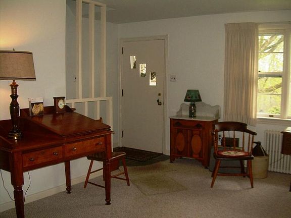 Deceiving Home! 2 large bedrooms and full bath on second floor. Hardwood flooring. Eat-in kitchen plus formal dining room. New dishwasher and range/oven. Two full baths. Lots of closet space. Covered patio overlooks large rear backyard. Move right in-all appliances stay. Convenient location.
