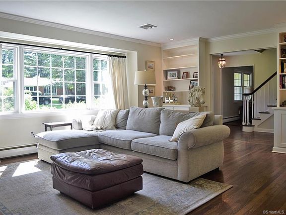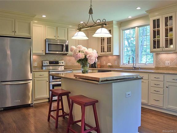 On a quiet street in North Stamford, sits a picturesque 4 bedroom, 2.5 bath Colonial with a rich aesthetic. Enter the front doors and see a nicely updated home throughout. The living room is lined with hardwood flooring, built-in bookshelves and a large picture window that allows for views of the expansive front yard and pristine landscaping. The dining area boasts hardwood flooring, a bay window and the elegance of updated space. The updated kitchen includes state of the art stainless steel appliances, granite counter tops and a large island for ease and luxury. The Family Room boasts hardwood flooring, a brick-lined fireplace, and access to the back patio. Two of the spacious and well lit upstairs bedrooms boast hardwood flooring, one includes a full bath with a remodeled tile shower. The third and fourth bedrooms have wall-to-wall carpet, great natural light and access to the full bathroom in the carpet lined hallway. You won't want to miss the chance to move right in to this updated home.