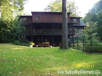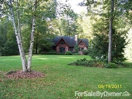 Custom log home located in Penn Township, South Butler County. Situated on a private lane in a densely wooded setting, its location is an exclusive neighborhood featuring quiet, country living, just minutes from the convenience of route 8 (25 minutes from Cranberry). 3,000 square feet of spacious living on three levels. This unique log home features 10' square, solid pine, half-dovetailed, log walls with persia-chink chinking exposed in-between. Five bedrooms and four bathrooms (3 full, 1 partial), including a master suite with private bath, walk-in closets, jacuzzi, and an additional room for a home office, studio, or nursery. Large, country kitchen opens onto a covered porch overlooking the back yard and woods. A sizeable laundry is adjacent to the kitchen. dining room is partitioned from the main living area by the stone masonry back wall of the fireplace. Large stone fireplace with sitting hearth in the living room provides a circulating heat system. Finished game room with full stone fireplace, full bath, and triple doors to brick patio. 2.5 car garage with carriage style garage doors and ample space with a workbench. It is heated with storage shelving and summer kitchen. 4 acres including large front, back, and side lawns with perennial gardens. A playhouse for the children is outfitted with its own small deck and miniature bunks. It is the perfect, safe getaway for kids. A 15' x 20' barn with gardening shed is ideal for a gardener or woodworker who wants their own space. Private well and septic system. Low Butler County taxes and South Butler School District. This home has $75,000.00 of upgrades. It is a MUST SEE!