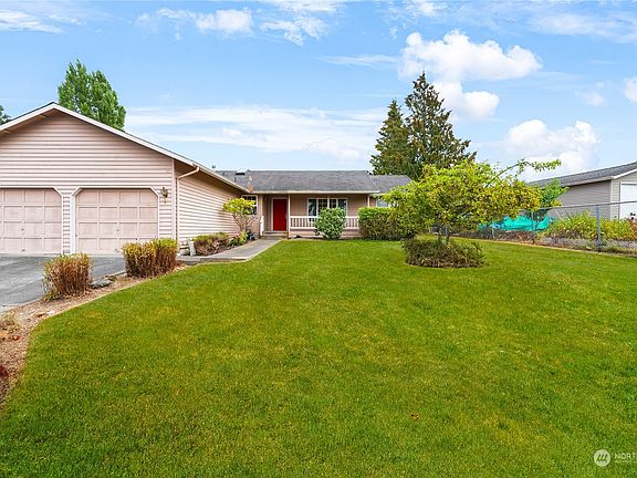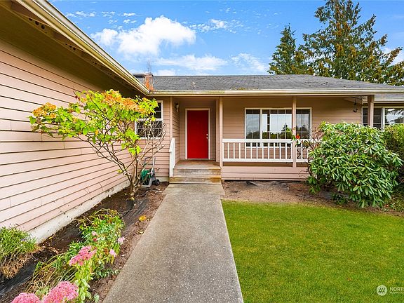 Adorable one level home. Enter from the peaceful & private covered front porch to the large living room & dining area. The family room, with a fireplace is open to the kitchen and has sliding glass doors leading to the very private and huge fenced rear yard. The kitchen is well designed with lots of storage including a large pantry & built-in desk area. The bedrooms are good size & all have ceiling fans. The primary bedroom has a private 3/4 bath & a walk-in closet. The full-size laundry room leads to the oversize garage. Plenty of parking for your RV/Boats in the side yard & a large swing gate allowing access to the rear yard for additional parking. Great neighborhood,close to shopping & hospital, easy access to I-5.Close to Haggens too!