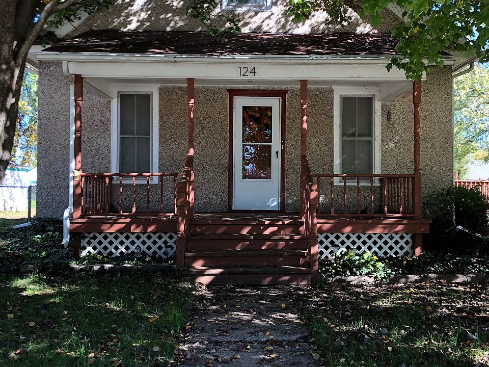 Cozy, very unique home with loads of character -hard wood floors, remodeled kitchen, covered front porch, detached garage and shed. Large, double lot with beautiful mature trees. Private backyard with garden area. All appliances included with sale. Walking distance to church and school. Furnace and flume replaced 2016. Roof is under 10 years old.