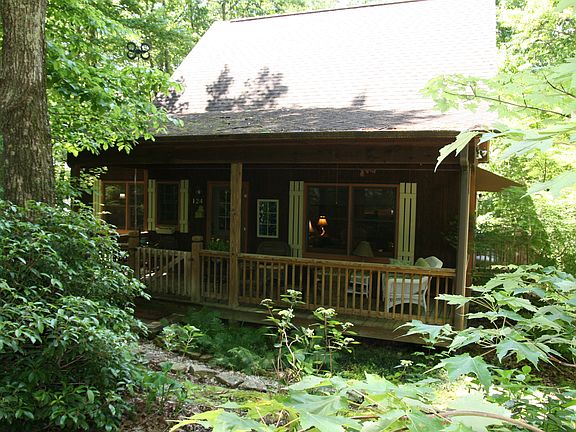 A perfect cabin in the woods for a couple or small family. Excellent condition; very well maintained and cleaned routinely. Solid pine floors, molding and cabinets. Painted sheetrock walls and smooth surface ceiling; 9' down, vaulted upstairs. Fireplace with gas logs and tile mantle. Recessed ceiling lights, spot lights on exterior east and west sides. SS appliances, smooth top stove/oven. Unique wrought iron light fixture in kitchen.