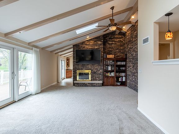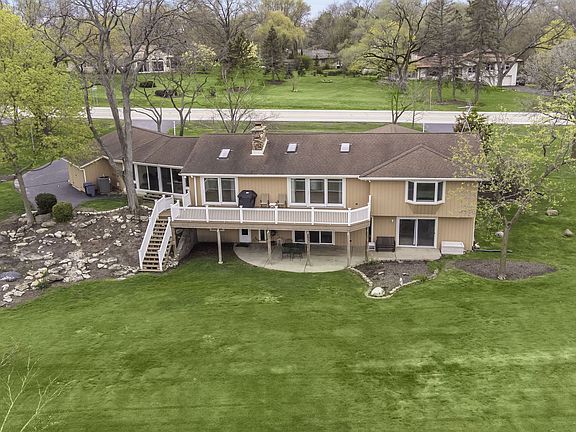 Breathtaking view of the lake from almost every room! Beautiful ranch with walkout basement well situated on 1.2 acre in Deer Lake subdivision. Bask in the sun/ swim/ fish/ ride catamaran on your private beach with full lake rights. From the moment you walk in, you'll be impressed by cathedral ceiling in the hallway, living room and dining room. Tons of light is coming though the wall of windows. Oversized patio doors leading to the enormous deck with spectacular uninterrupted view of the lake. Updated kitchen with 42" cabinets, granite counter tops, SS appliances and wine cooler has direct access to the sun room. Primary bedroom has a view of the lake. Newly remodeled first floor bathroom. Very bright walk out basement has a large recreation room and sizable bedroom with lake view and full bathroom. Half Circle driveway provides clear view and easy access to and from property. Super convenient location min away from Metra, shopping, dining and entertainment. All new windows and patio doors. Newer well pump, water softener, A/C, water heater, furnace motor & garage door opener.