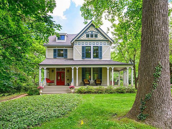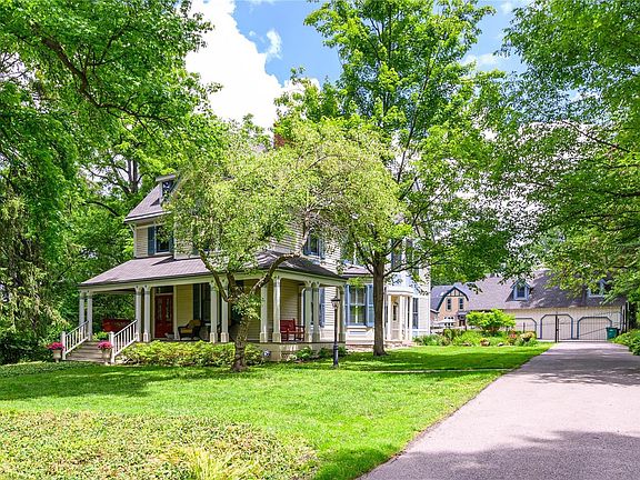 OPEN CANCELED - UNDER CONTRACT Quintessential Historic Webster ~ Queen Anne, circa 1882, built by premiere developer, William Plant. Thoughtfully restored, retaining the beauty and integrity of the era with today's features. Lush park like yard (beckons for a pool), 3 car detached garage/carriage house. Home: 5+ bedrooms, 4 baths, newer kitchen with hearth room, formal foyer, dining and living rooms, front and rear staircases, wrap around front porch, screened porch, 7 fireplaces, wood floors, original hardware, stain glass, transoms, newer wood windows. Wolf & Bosch appliances (double ovens), granite, butlers pantry, hearth room with fireplace. 2nd floor primary, fireplace, walk in closet, luxury bath, laundry room, 3 more beds, hall bath. 3rd floor family room, bedrooms/bath. Zoned heating/cooling, 2 water heaters/electric panels. Carriage house: additional living space (not incl in sq ft) 2 full baths, its own systems including HVAC. Inground sprinkler, wrought iron fencing/gate.