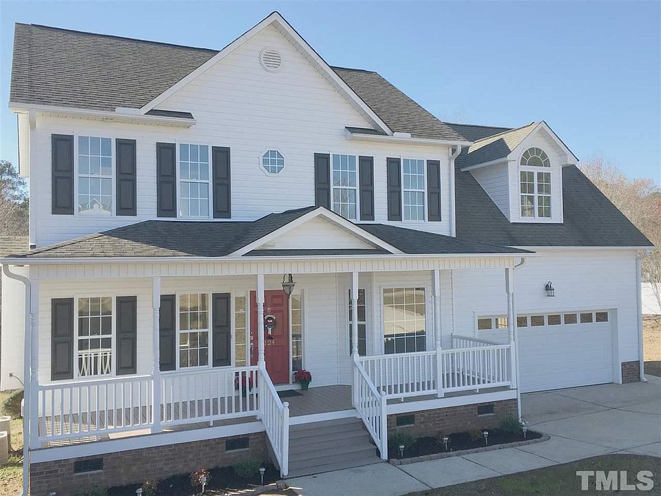 Welcome to this beautiful, transitional home, w/open floor plan, Move-In Ready. Great curb appeal situated in cul-de-sac w/mature trees on almost an acre. You'll enjoy your southern style front porch, welcoming front entrance w/side light windows. 2 car fin. gar. w/side entrance, full decking on back of home for entertaining, private wooded lot. Features Lg. Living room w/marble gas fp., Kit Isle/ceramic tile, SS Appl., Sep.Dining/Laundry room. Vinyl windows, Owner Suite/GardenTub, Lg. wic, ceil fans.