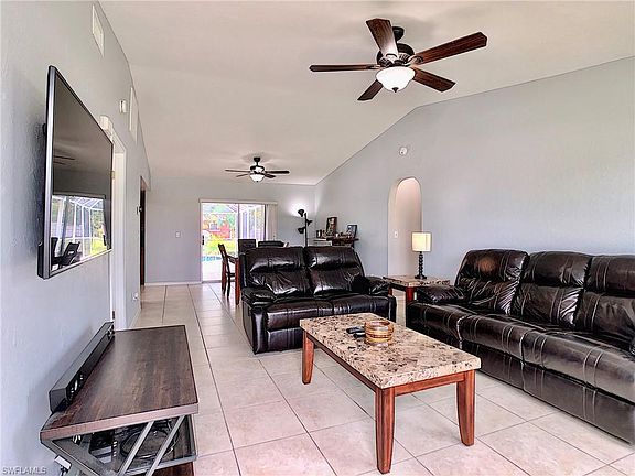 City water and assessments paid pool home in south Cape Coral. This adorable 3 bedroom 2 bath homes has a huge living area which connects to the dining room. Oversized open kitchen is great for anyone who loves to cook. Bonus room great for game room or office. Dedicated laundry room has plenty of storage. Master has two oversized closets. Upgrades to include new paint inside, both bathrooms recently updated, new carpets in guest bedrooms, deep kitchen sink & lighting in kitchen, new fans and lights throughout, pool cage screen replaced, ac in 2018, hot water heater in 2019, led pool light 2018. Come and enjoy the pool with the highly sought after southern facing view. Backyard is fenced in which is great for kids and pets. Don't hesitate come see the is amazing home before its gone! Minutes away to Ft Myers, shopping, hospitals, grocery stores and so much more.