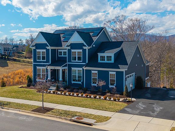Step into a world of refined elegance with this exquisite 5-bed, 4.5-bath, 5,133 sqft Pearl Certified home in Westlake Hills. Perfectly positioned on a serene half-acre, this modern sanctuary blends luxury, sustainability, and breathtaking Blue Ridge Mountain views. Inside, hardwood floors lead to a gourmet kitchen with quartz countertops, Electrolux appliances, and a dine-at island. The open living area features a fireplace, coffered ceilings, and oversized windows. The main-level primary suite offers French doors, upgraded lighting, and a spa-like ensuite with a Roman shower, soaking tub, and walk-in closet. Upstairs, find four bedrooms, including an ensuite guest room and a versatile bonus room. Step outside to a professionally landscaped entertainer’s paradise—an elegant paver patio with stone steps, a fire pit, and a 8-person hot tub, ideal for soaking in stunning mountain sunsets. Designed for the future, A 10kW solar system reduces electric bills to $0, earning an average of $500 in annual credits. Pre-wired for EV chargers and battery backup, this home is as smart as it is stylish. Experience the best of Crozet living, with scenic hiking trails, a vibrant community, and seamless access to nature.