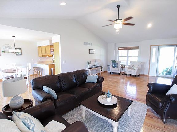 Beautiful, well maintained, move in ready home in a great neighborhood! Before entering the home, you'll notice the beautiful lush landscaping and quiet cul-de-sac it's located on. Recently updated with new paint throughout, new light fixtures, new hardware and new faucets in master bathroom. The home features a great room with vaulted ceilings and solid wood flooring. Kitchen has custom solid wood cabinetry, breakfast bar, ceramic tiling, appliances and pantry. The eat in kitchen area features French doors that lead to the outdoor covered patio. Master bedroom suite has a large bay window, large walk in closet and master bathroom. Two additional bedrooms and an additional full bathroom on the main level. Open staircase leads to the full finished basement, complete with a bonus full kitchen, dining space, lower level sleeping area, full bathroom, large family room and gas fireplace. Lower level also has an unfinished storage space with battery backup sump pump and a side walk up.