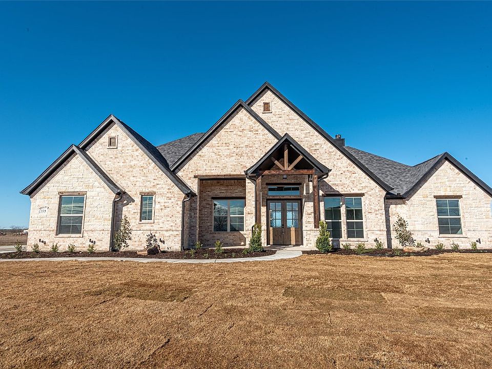 LBK Homes build a top quality home. NEW construction home on a 2.01 acre tract in Decatur ISD! This 2693 sq ft home boasts 4 bedroom, 2 and a half bathrooms with an office. Fantastic finish outs can be seen throughout this custom home. Wood look tile, vaulted ceilings in the living room, quartz countertops, farm house sink in kitchen, beautiful cabinetry, double oven, large walk in shower in the master bath, separate sinks, office, half bath, and stone fireplace on the covered back porch. Brick and stone exterior with cedar accents is warm and inviting. This home is equipped with rain gutters and a land scape package.