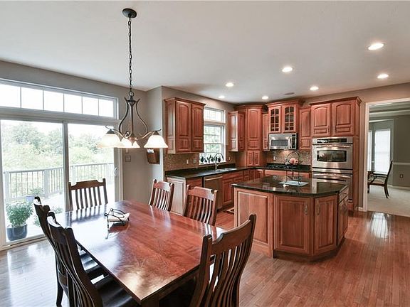 Fantastic Colonial 4 bedroom in the desired GREAT MEADOWS neighborhood! Hardwood floors, granite kitchen with double wall oven and step down family room offer a luxurious feel to the space. Enormous master suite with a sitting room and his and her walk in closets. Plan your backyard BBQ because this home has both a spacious outdoor patio and an upper two level deck that overlooks the gently sloping yard and township owned green space. Great privacy! Low maintenance exterior with three sides brick. Many upgrades throughout including a three car attached garage and a finished lower level game room with a wet bar for gathering with family and friends!!