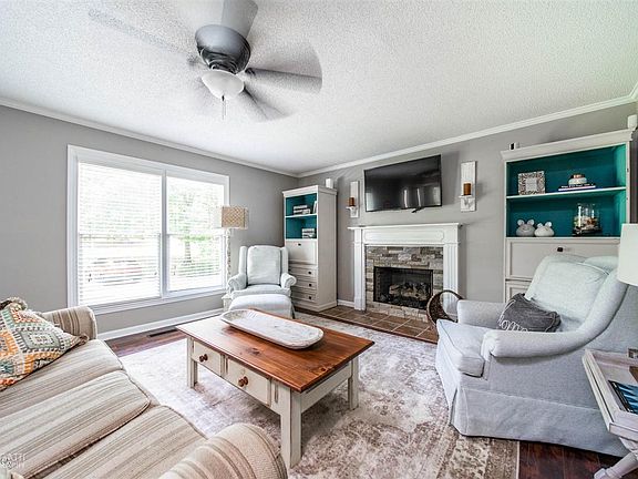 - Carpeted Floors, Attic Storage, Fireplace, Gas Logs, Pantry, Security System, W/D Connection, Walk-In Closet(s), Garden Tub